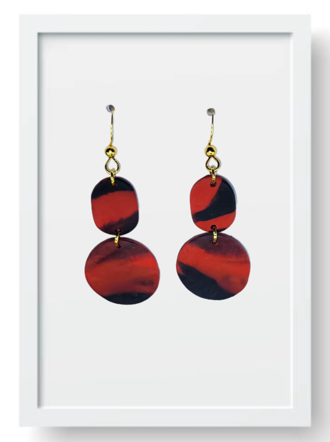 Black and Red Marble Oval and Circles - Handmade Polymer Clay Earrings