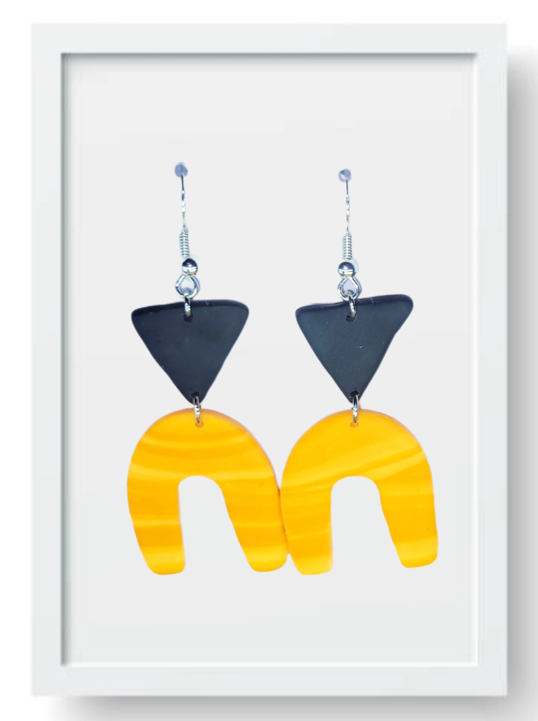 Black Triangle and Marble Orange Horseshoe - Handmade Polymer Clay Earrings