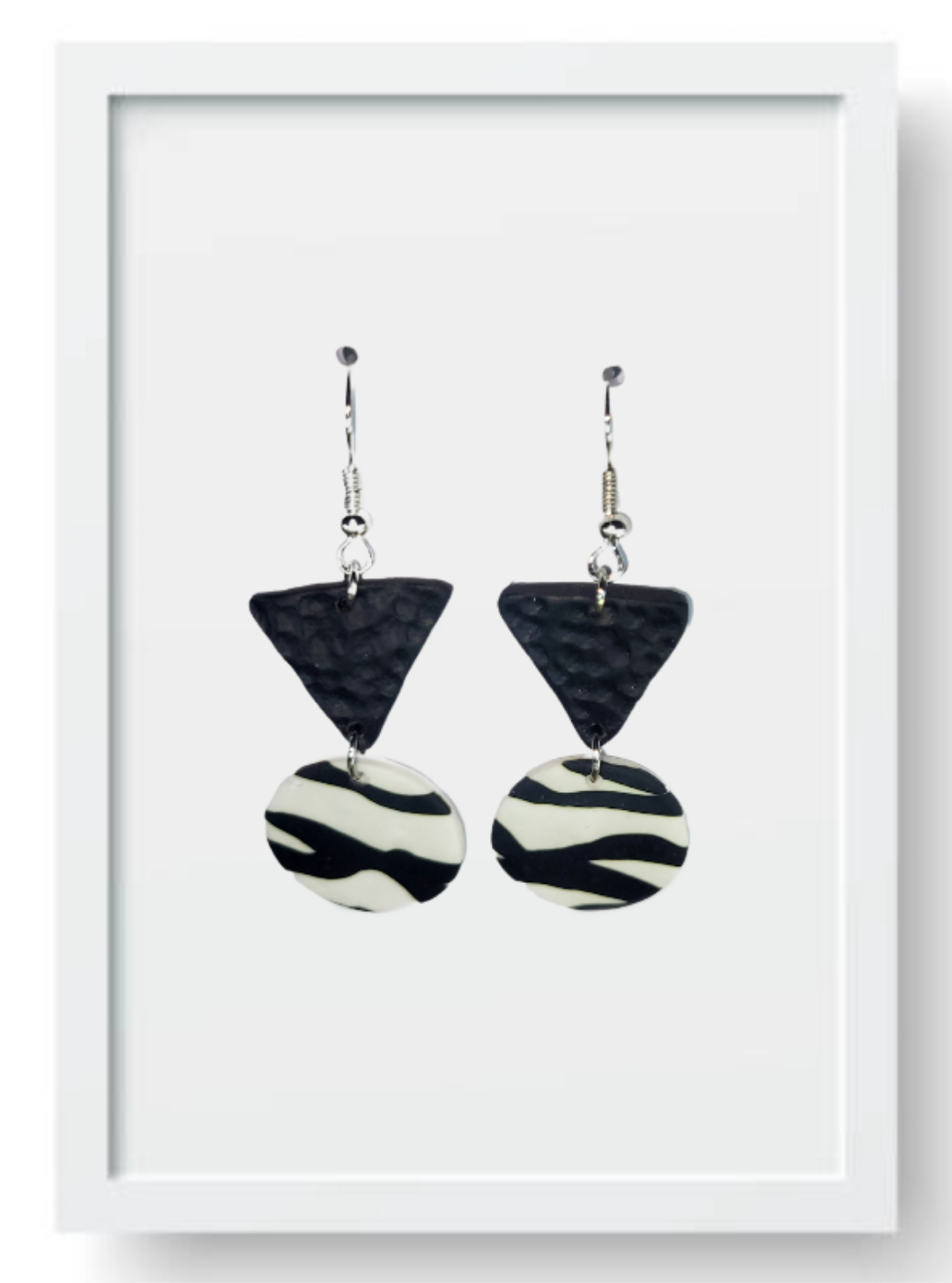 Black Triangle and Zebra Circle - Handmade Polymer Clay Earings