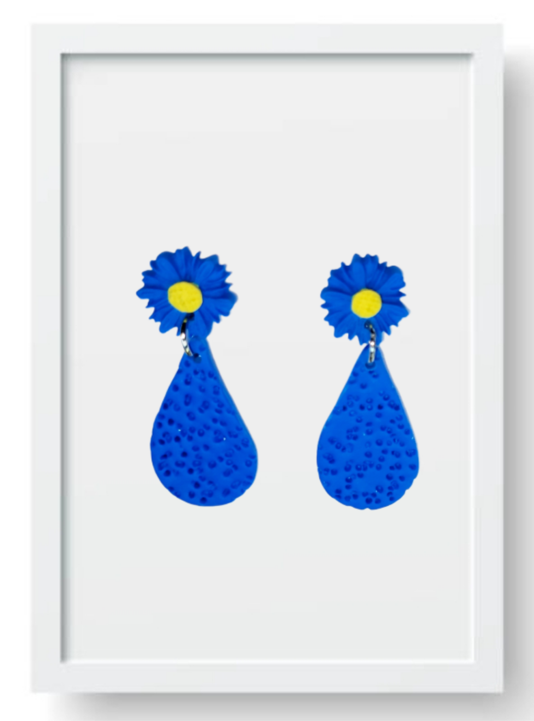 Blue Flower and Blue Teardrop - Handmade Polymer Clay Earings