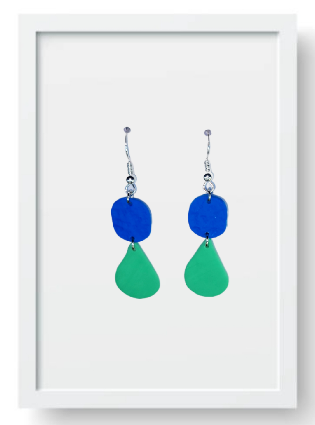 Blue Oval and Mint Teardrop - Handmade Polymer Clay Earrings