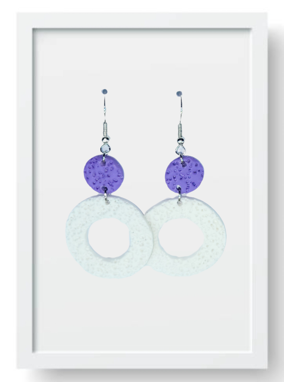 Lilac Circles with Medium White Ring - Handmade Polymer Clay Earrings