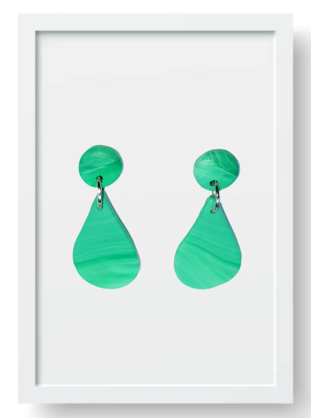 Mint Green Circle and Teardrop - Handmade Polymer Clay Earings
