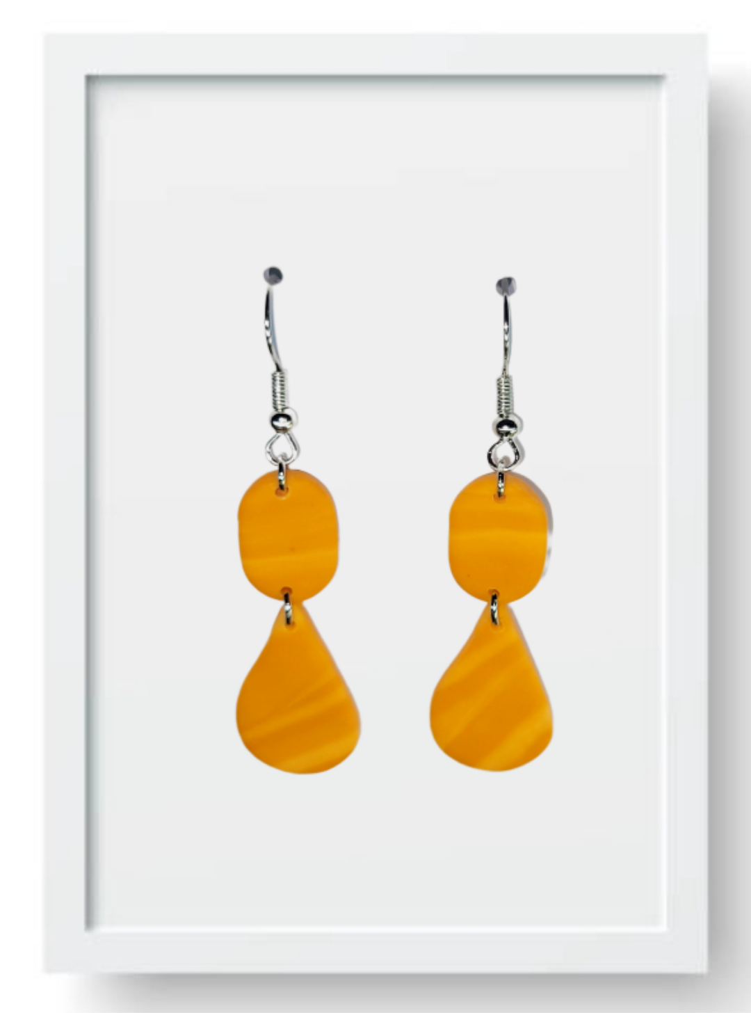 Orange Marble Oval and Teardrop - Handmade Polymer Clay Earings