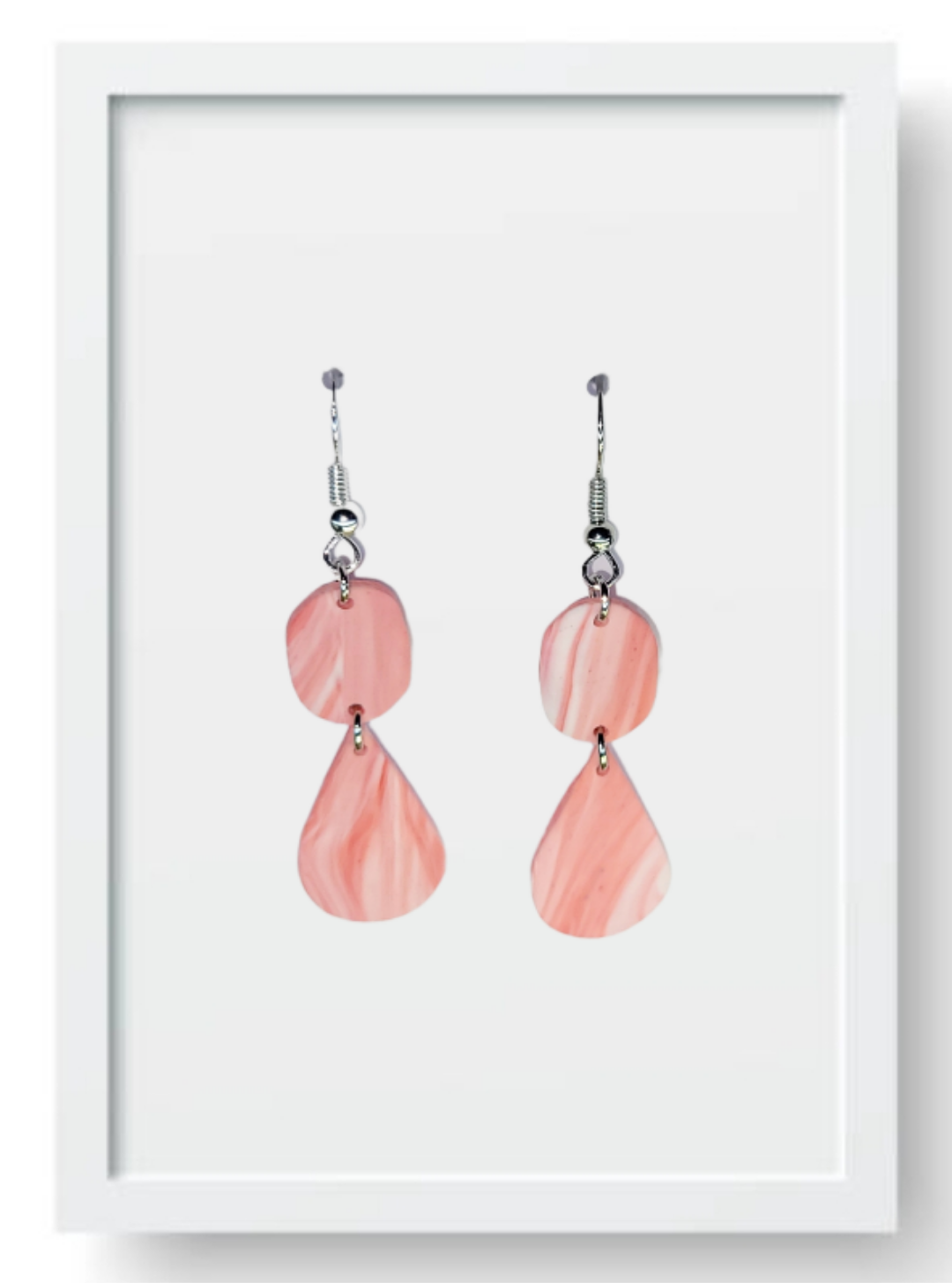 Pink Marble Oval and Teardrop - Handmade Polymer Clay Earrings