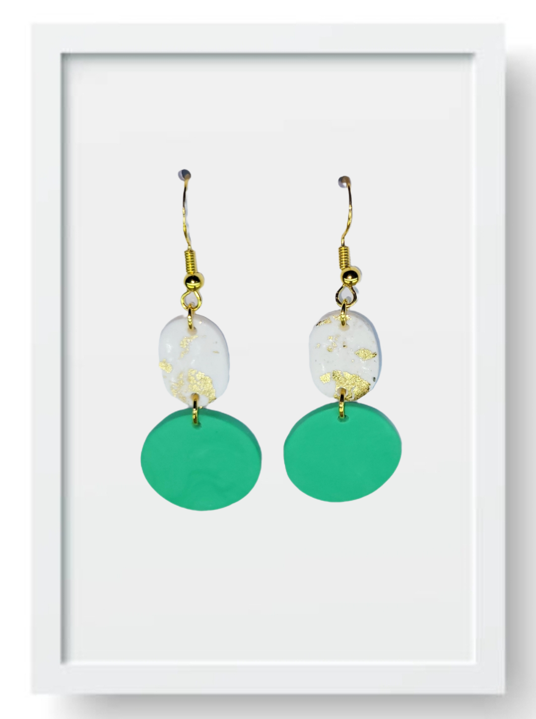 White Oval and Mint Circles - Handmade Polymer Clay Earrings